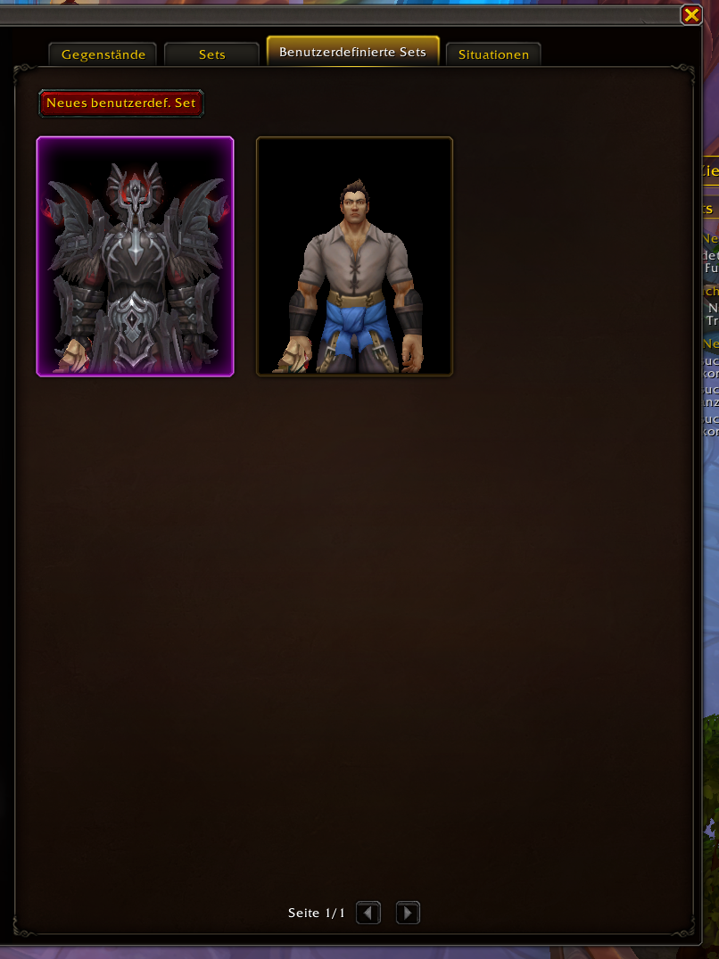 - Einzelne gespeicherte Ausrüstungssets
