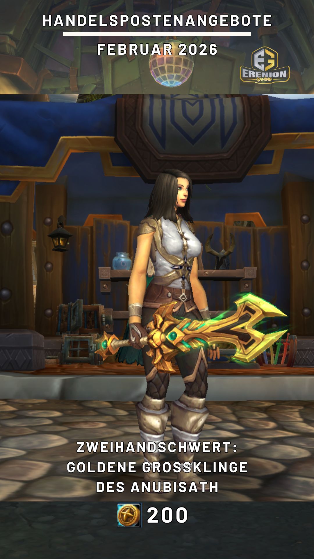 - Zweihandschwert: Goldene Großklinge des Anubisath für 200 Händlerdevisen