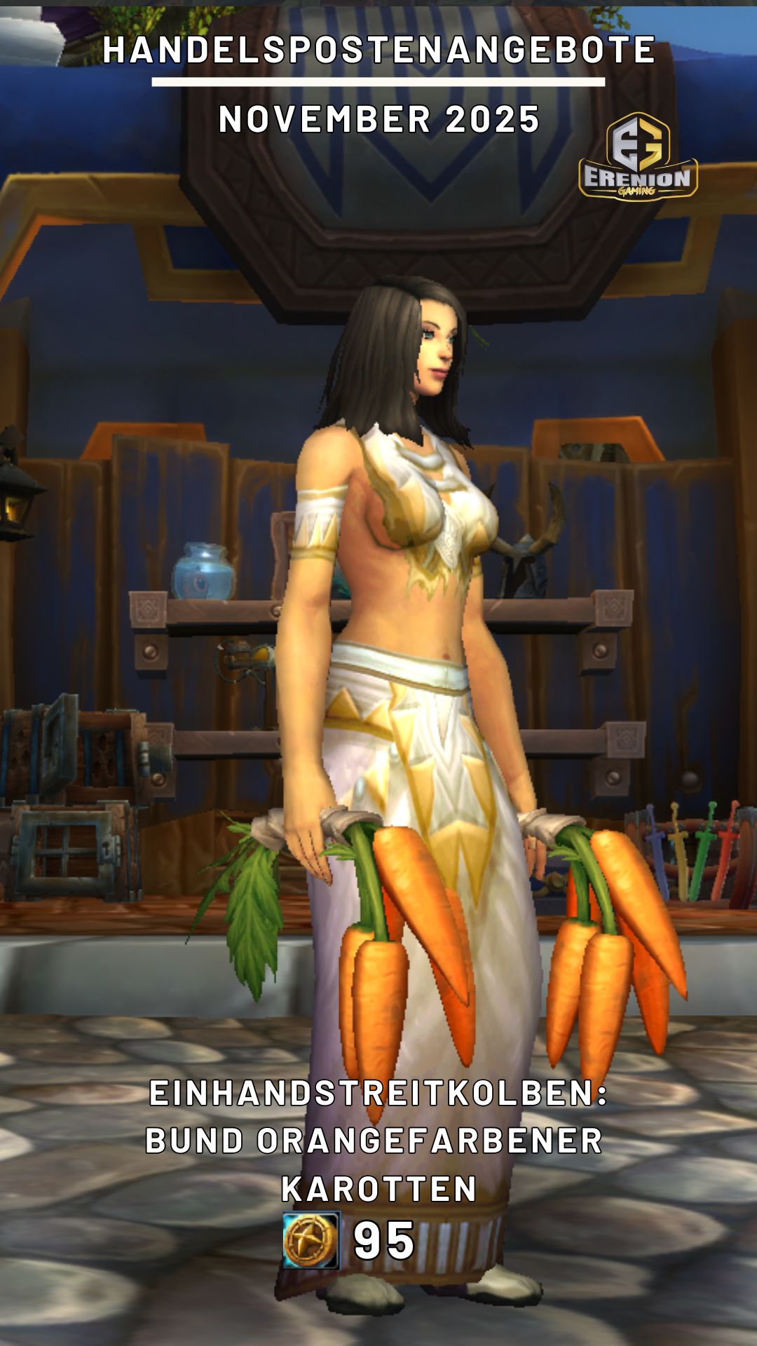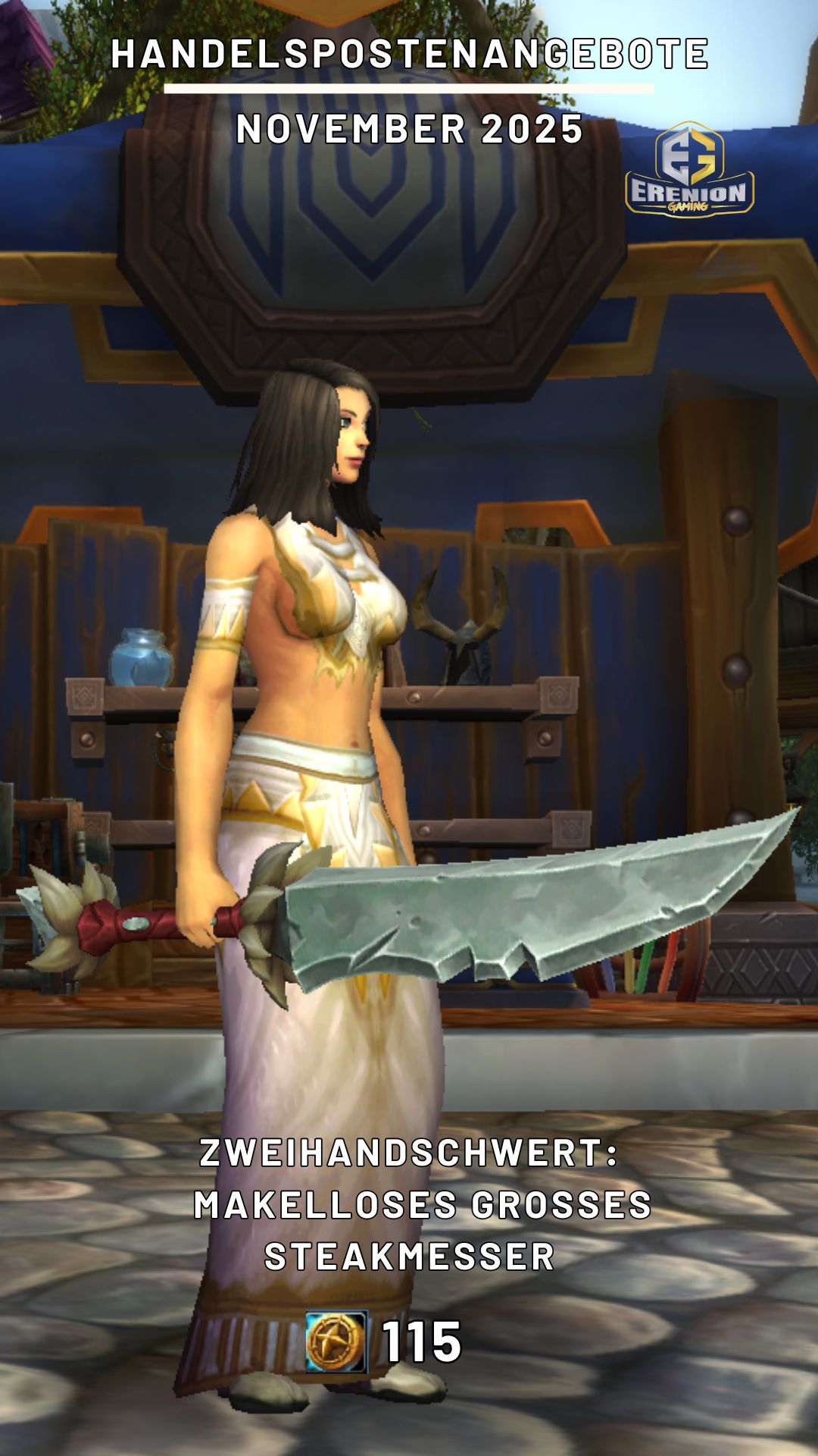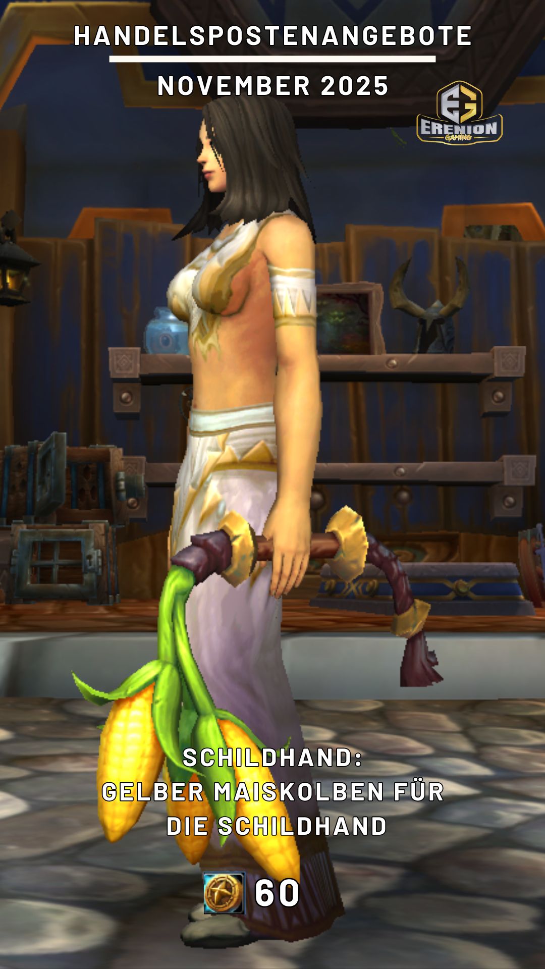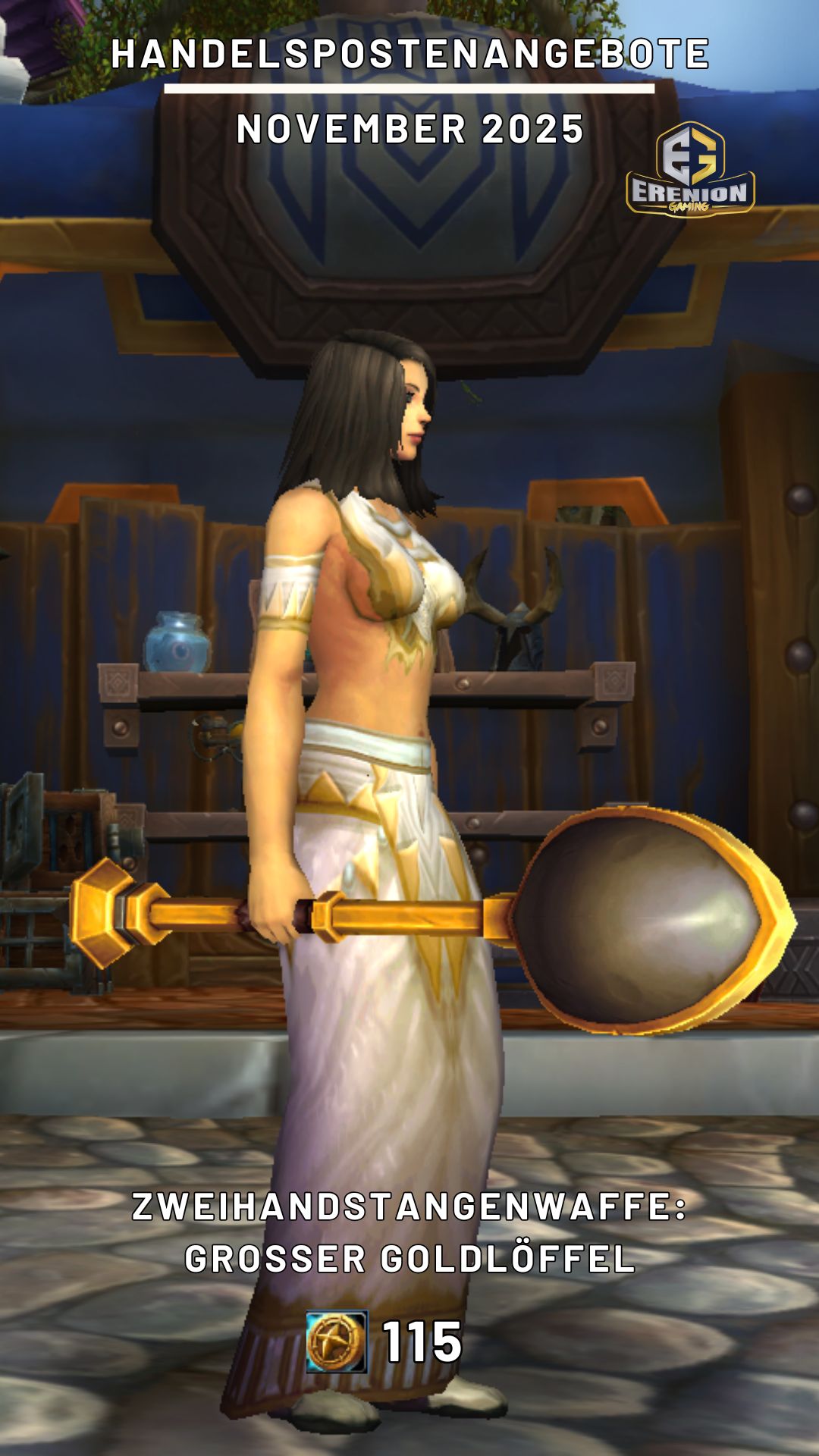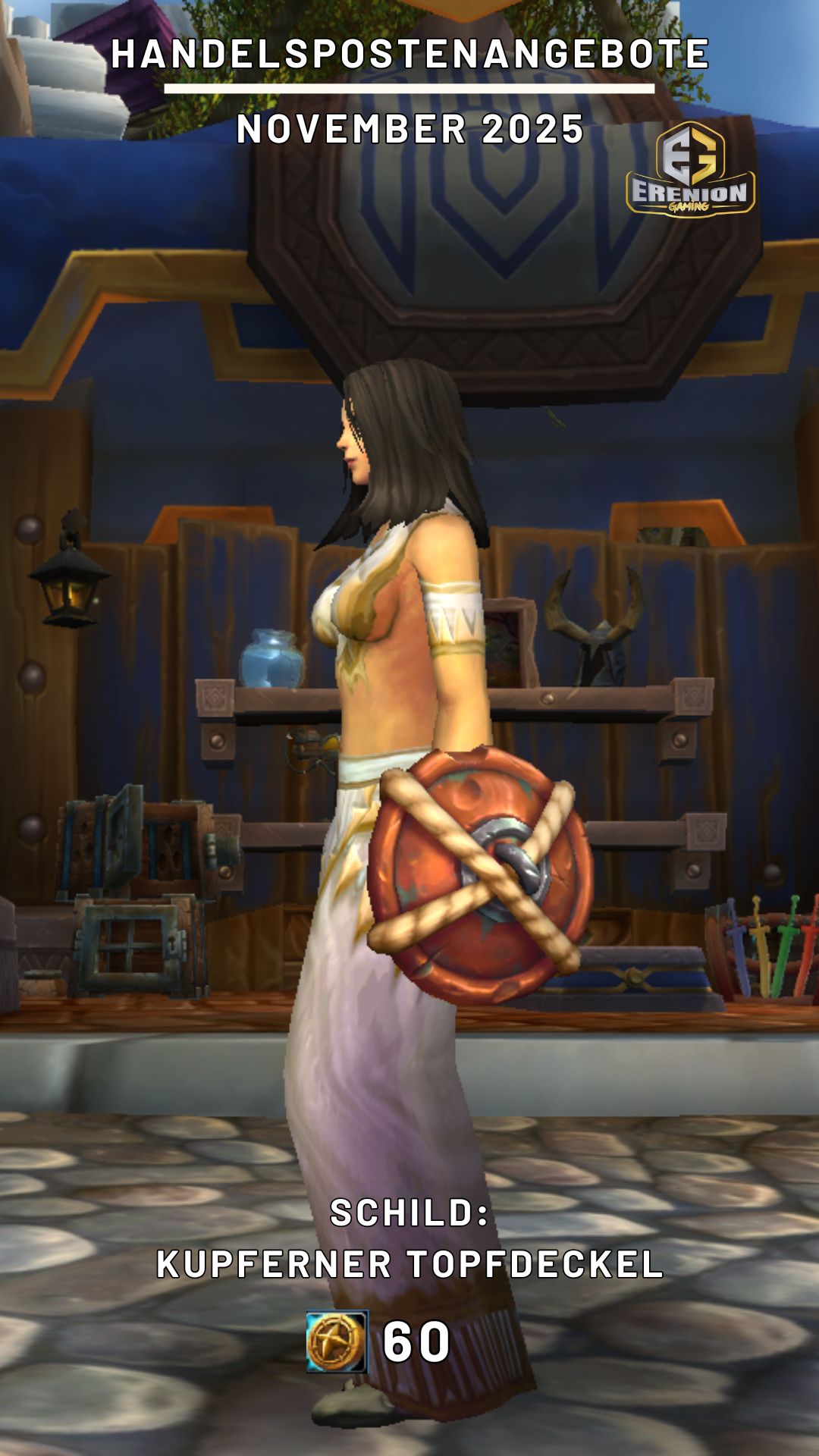 In unserer großen Angebotsübersicht haben wir Euch alle möglichen Waren des Handelsposten für diesen Monat aufgelistet. Sammelt Euch Händlerdevisen durch das Abschließen von jeglichen Aktivitäten in World of Warcraft.