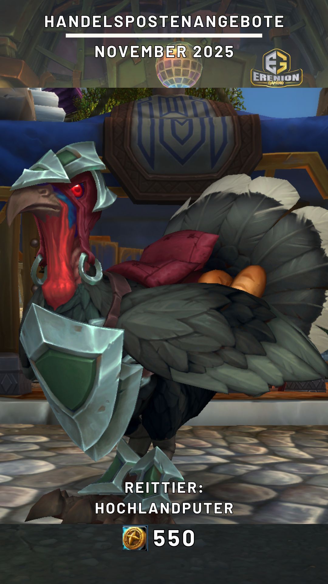 Durch das Abschließen des Reisetagebuchs im November 2025 gibt es als Belohnung das Reittier: Preisgekrönter Truthahn.