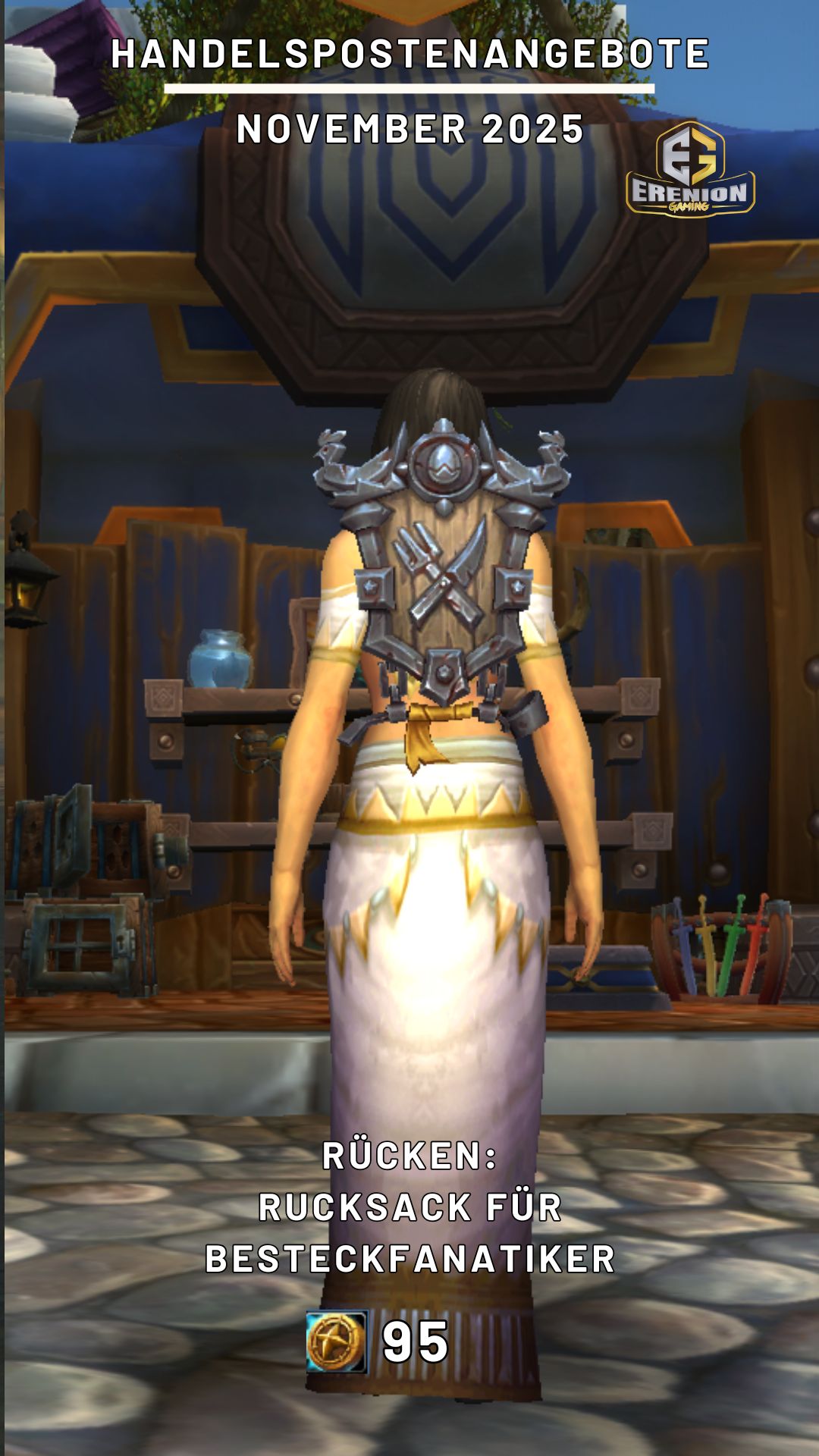 Besucht T&W (Tawney und Wilder) direkt außerhalb des Magierviertels in Sturmwind oder den Handelsposten Zen’shiri neben der Feste Grommash in Orgrimmar, um einen Blick auf die neuesten verfügbaren Waren zu werfen. Spielercharaktere können zudem den Handelsposten in der Hauptstadt Dornogal (die Schmiedegründe) auf der Insel von Dorn besuchen, wo sowohl Vertreter von Tawney und Wilder und des Handelspostens Zen’shiri die Türen für sie öffnen.