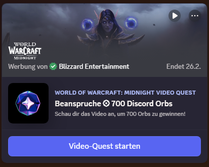 Nach der noch nicht vor all zu langer Zeit vergangenen Discord Promotion Aktion zu World of Warcraft, gibt es jetzt eine weitere sehr einfach und schnell abzuschließende Quest für Discord User.