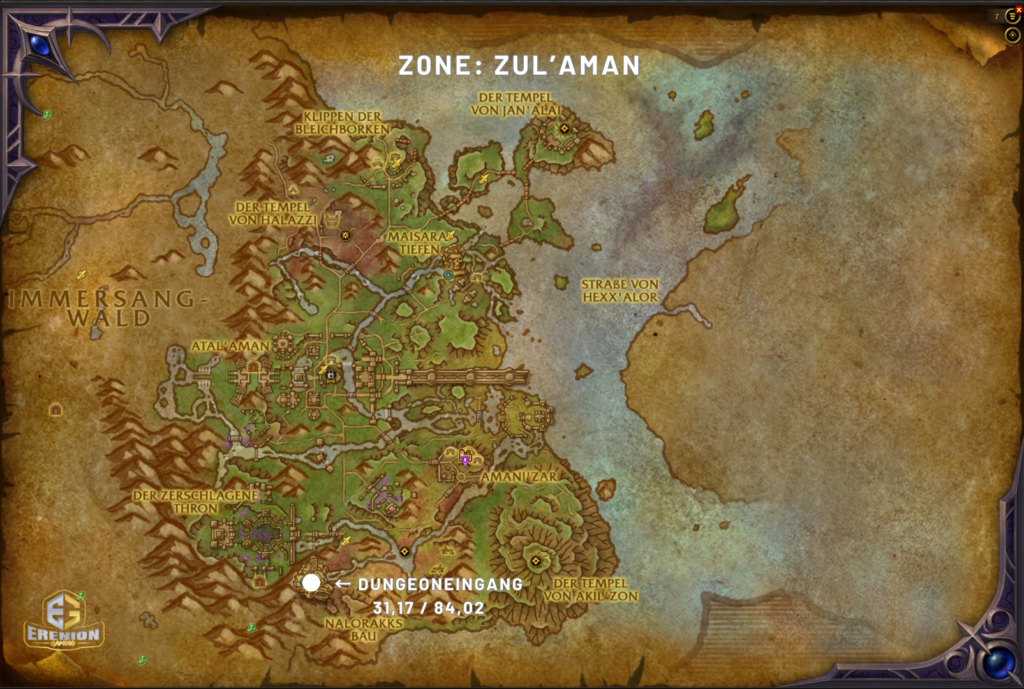 Den Eingang zum Dungeon findest du in Zul’Aman von der neuen Zone in Quel’Thalas.