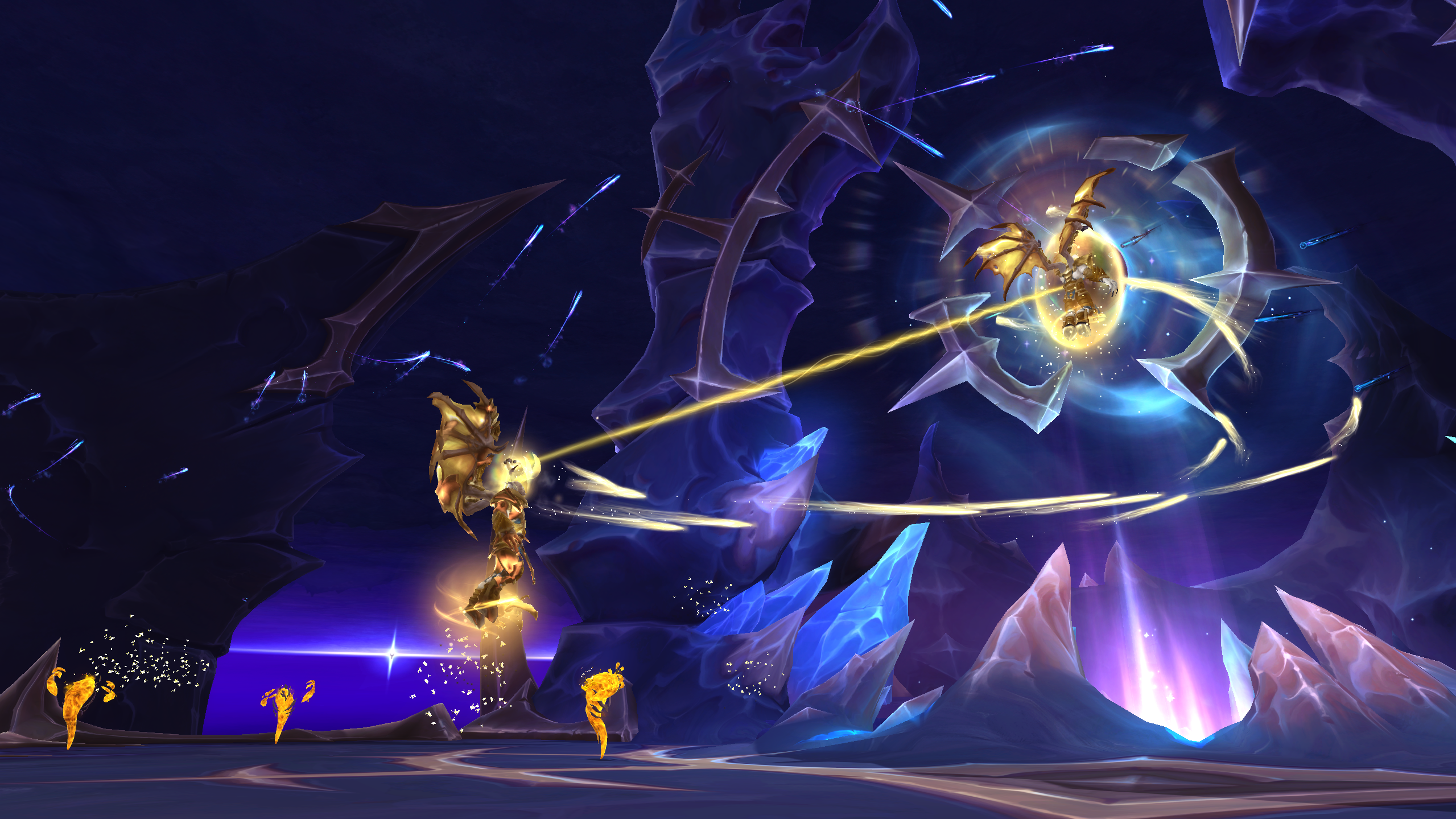 Von Lothraxion verwundet beginnt Nysarra den Kampf mit 60 % Gesundheit. Gelegentlich scheiden zersplitterte Abbilder durch die Arena und lösen „Lichtgezeichnete Flamme“ aus.- Lichtgezeichnete Flamme – Wichtig!
