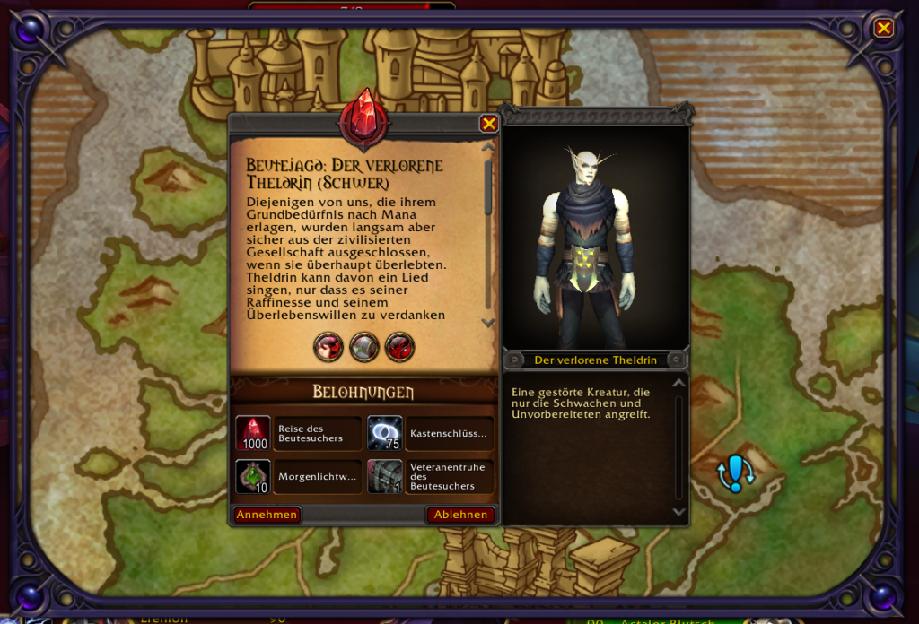 Ihr könnt die Beutejagd: Bevorzugte Beute von Astralor Blutschwur in seinem Sanktum in Silbermond kaufen. - Und jetzt zum Zorn!