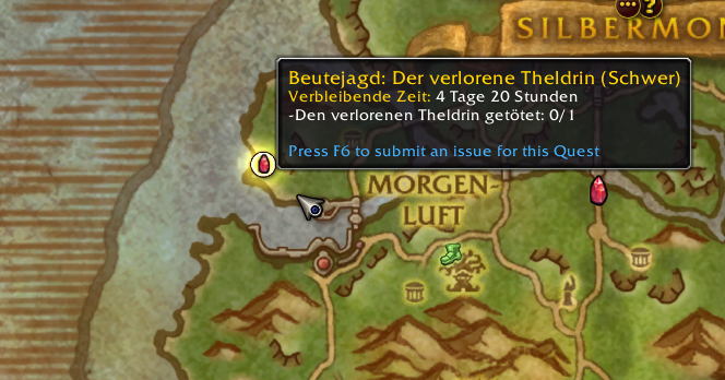 Habt Ihr dann das Jagdziel abgeschlossen, könnt Ihr wieder zurück nach Silbermond zu Astralor Blutschwur gehen und die Jagd abschließen bzw. eine neue Jagd annehmen.