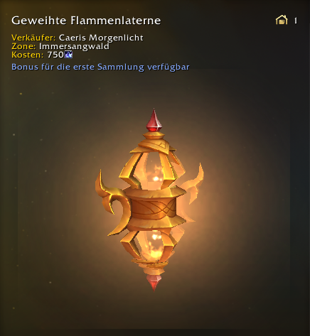 - ab Stufe 15: Geweihte Flammenlaterne für 750x Leerenlichtmergel