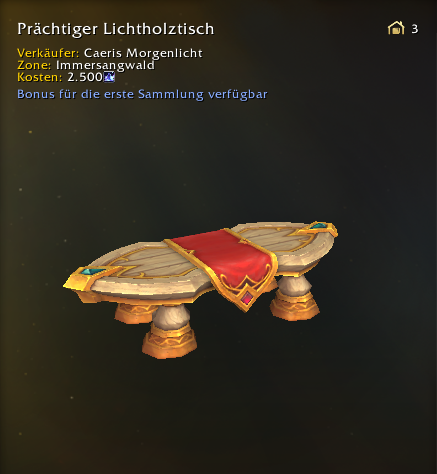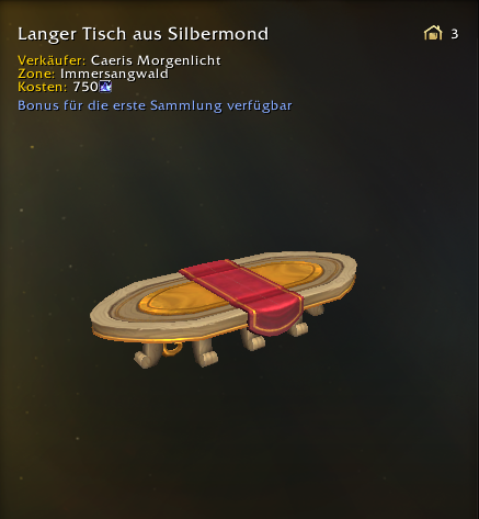 Ihr könnt an Lord Saltherils Soiree teilnehmen, indem Ihr bei Saltherils Hafen im Immersangwald mit ihm sprecht. Benötigt Stufe 90. - Dekoration aus Silbermond I