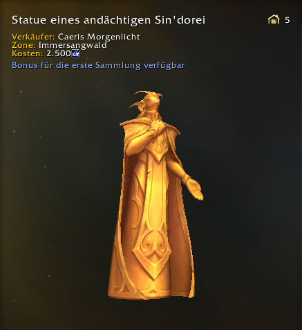 - ab Stufe 18: Statue eines andächtigen Sin’dorei für 2.500x Leerenlichtmergel