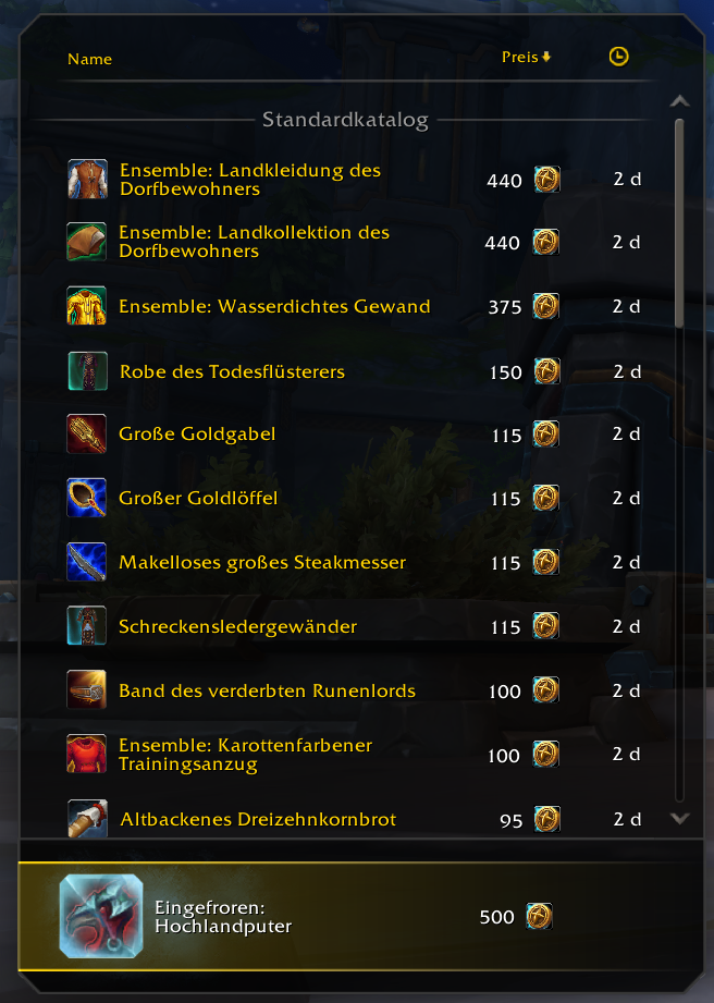 - Transmog: Einzelne Gegenstände, aber auch ganze Sets. Dazu gehören Waffen und jegliche Ausrüstungsteile.