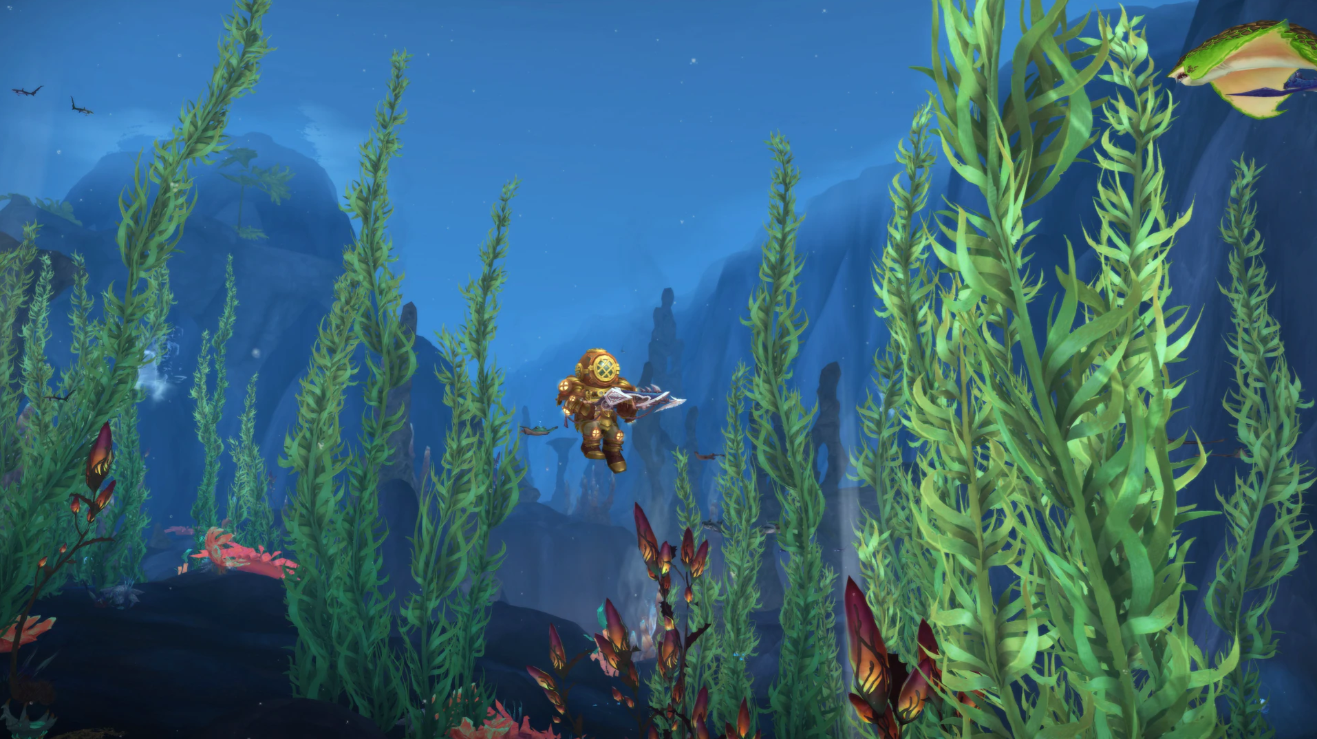 Taucht tief in die schimmernden Gewässer vor der zerklüfteten Küste von Zul’Aman ein, wo Schwärme exotischer Fische knapp unter der Oberfläche in einem neuen wiederholbaren Ereignis wimmeln: Abgrundfischen. Schließt euch zusammen, fischt so viele wie möglich und sammelt Punkte, um Angelbelohnungen und Verbesserungen für eure Tauchausrüstung freizuschalten. Dadurch könnt ihr tiefer in den Abgrund vordringen, wo die größten Schätze warten.