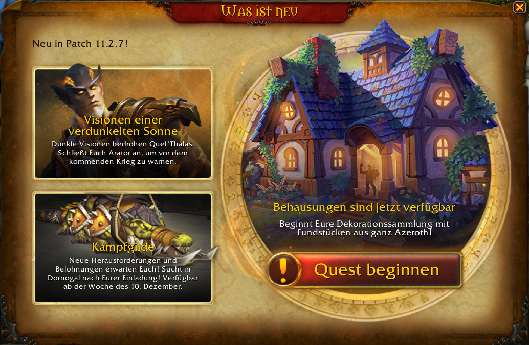 - Wenn ihr nach einer Pause wiederkommt oder einfach beim nächsten Mal einloggt, startet für euch automatisch eine spezielle Quest. Sie führt euch direkt ins Behausungs-Tutorial – perfekt, um Hauskauf, Gestaltung und alle Grundlagen kennenzulernen.